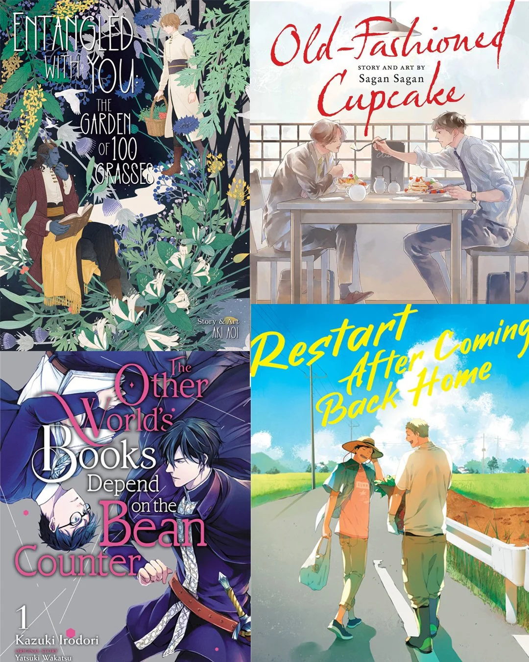 "Are you a fan of BL (Boys-Love) manga? Do you often find yourself wishing you had a community of like-minded individuals to share your passion with? Well, look no further! This club is the perfect place for you to connect with others who share your interests and discover new titles to add to your reading list. The upcoming titles include two fantasies and two contemporary romances such as "Entangled with You: The Garden of 100 Grasses" by Aki Aoi, "Old-Fashioned Cupcake" by Sagan Sagan, "The Other World's Books Depend on the Bean Counter, Vol. 1" by Kazuki Irodori and Yatsuki Wakatsu, and "Restart After Coming Back Home" by Cocomi. Each story promises a unique and engaging experience that will take you on an journey. I look forward to meeting you for these new exciting readings!" Faciliated by: Hediah Wooden-Perdue